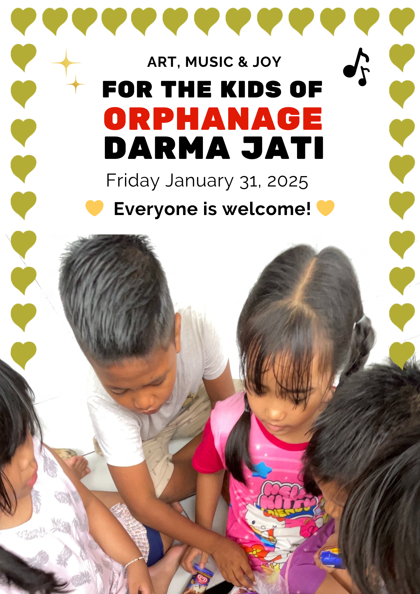 Join us as we bring love, creativity, and support to the incredible children of the Bali orphanage. Together, we’ll create art, share music, and enjoy meaningful moments. This day is about giving back, connecting with our hearts, and making a lasting impact. Let’s make it unforgettable!